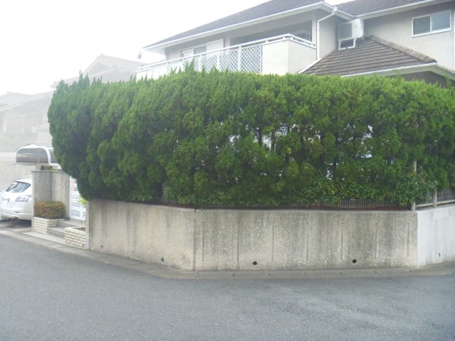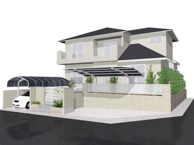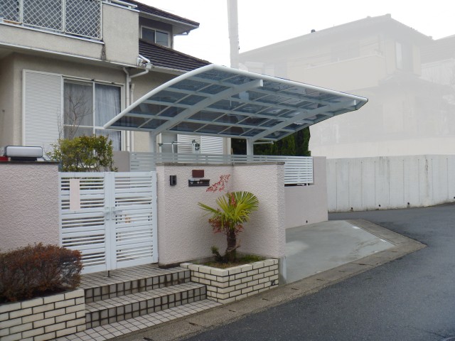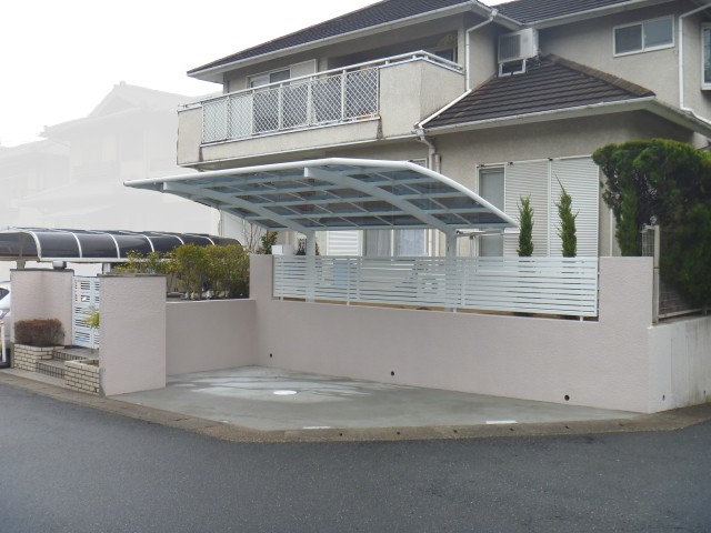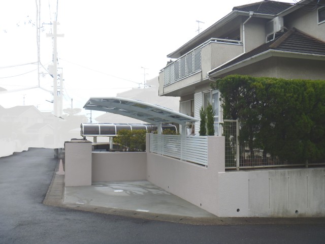 CPブロックによる土留めとフェンス、カーポートを設置しました。ベルアートによる壁面塗装▲別の角度から 工事前の様子▼工事後