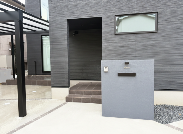 埋め込みの口金ポスト、ユニソン「コラーナ05」とあわせてソリッドな雰囲気ですね。