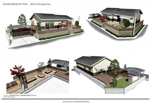 お客様の『想い』を形にするために、完成後の空気感まで伝わるパース図をご用意しています。図面だけでは分かりにくい奥行きや素材の質感を立体的に確認できるため、打ち合わせの段階で細かなこだわりを反映させやすく、納得のいく住まいづくりが進められます。建物と外構をトータルで設計することで、家単体ではなく、暮らしの背景まで含めた美しい景観を共に創り上げていきます。