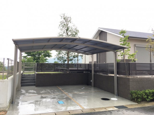 カースペースには、ゆとりある広さを確保したLIXIL「ネスカRワイド」をセレクト。その奥には、敷地の高低差を活かした勝手口階段を新たに設けお庭への裏口として「ハイグリッド門扉8型」を設置しました。あえて主張を抑えたシンプルな門扉を選ぶことで、全体の意匠を損なうことなく、住まいの安心感をスマートに高めています。