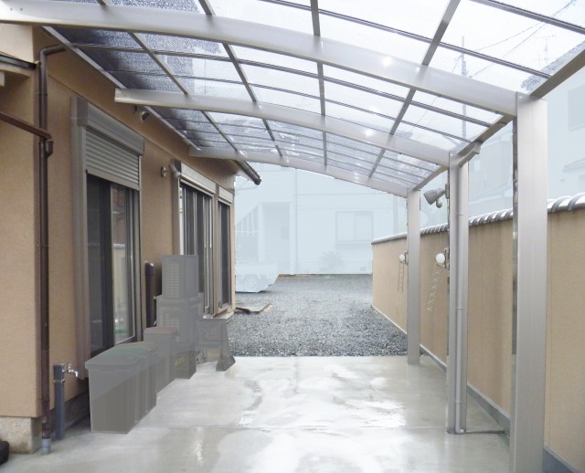 駐車スペースには、優美な曲線を描くアール型屋根が特徴の「モダンポート76」を連棟で配置し、大切なお車をワイドに保護します。カースペースの奥は、室内の掃き出し窓から直接アクセスできる広々とした土間スペースとして活用。重い荷物の運び入れや日々のゴミ出しもスムーズに行える、家事効率を最大限に高めたフラットな動線を実現しました。